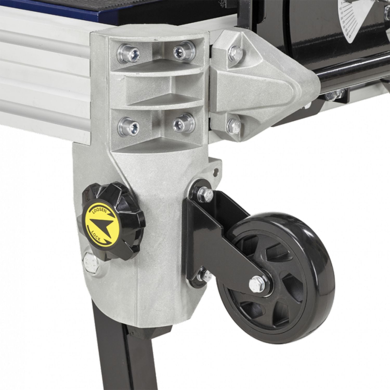 - Met aluminium onderstel, inklapbare poten, kettingaandrijving met robuust handwiel en uitschakelbare waterpomp.
