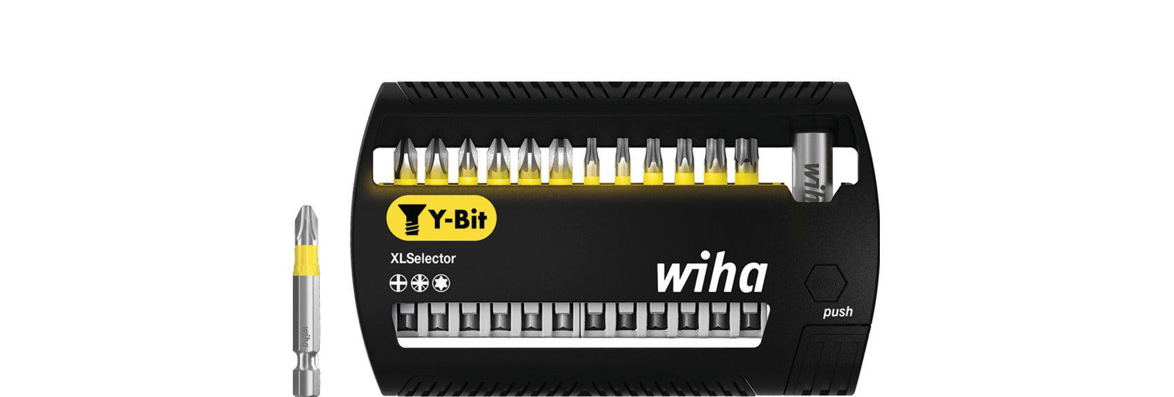 Tot nu toe was het bij de aanschaf van bits niet helder welke bit voor welke toepassing geschikt was. Wiha maakt een eind aan deze complexiteit tussen de gebruikte machine, de schroefklus en de ruime keuze aan verschillende bits. Dankzij het revolutionaire bitconcept van Wiha is alleen nog maar de vorm van de schroef bepalend voor de keuze van de juiste bit.Zo is de Y-bit ideaal voor het schroeven van Y-vormige schroeven met hoek van meer dan 90° tussen schroefdraad en schroefkop. Dankzij de gepatenteerde, verlengde torsiezone is de bit ook geschikt voor impact- en slagschroevendraaiers en garandeert deze een 120x langere levensduur ten opzichte van de Wiha standaardbits. Daarnaast kunnen de gekleurde bits snel en eenvoudig worden gevonden – en dankzij de gekleurde mantel ook in het donker met UV-licht. Daarmee wordt het aantal verloren gegane bits verminderd en wordt op de kosten voor nieuwe bits bespaard. De bits zijn, in de meest gangbare puntprofielen, compact en plaatsbesparend in de XLSelector opgeborgen.