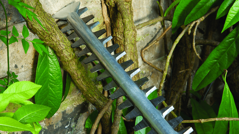 - De mes-protector maakt veilig snoeien langs muren en dichtbij de grond mogelijk.