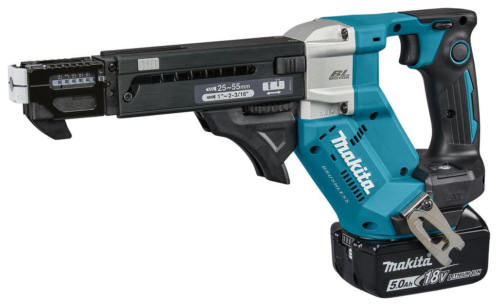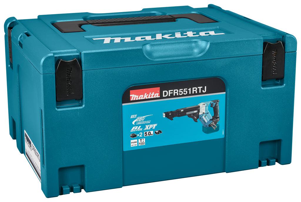 De nieuwe generatie schroefautomaten onderscheid zich van de rest door het relatief hoge toerental van 6000. De DFR551 is geschikt voor plastic gebonden schroeven van 25 tot 55 mm. Beide schroefautomaten zijn voorzien van een eenvoudig afneembaar neusstuk waardoor de bit eenvoudig is te vervangen en storingen te verhelpen. Het neusstuk is afneembaar zonder het schroeflint te verwijderen en opnieuw te installeren. De machine is voorzien van Push drive technologie waardoor je langer én stiller kunt werken met één acculading.