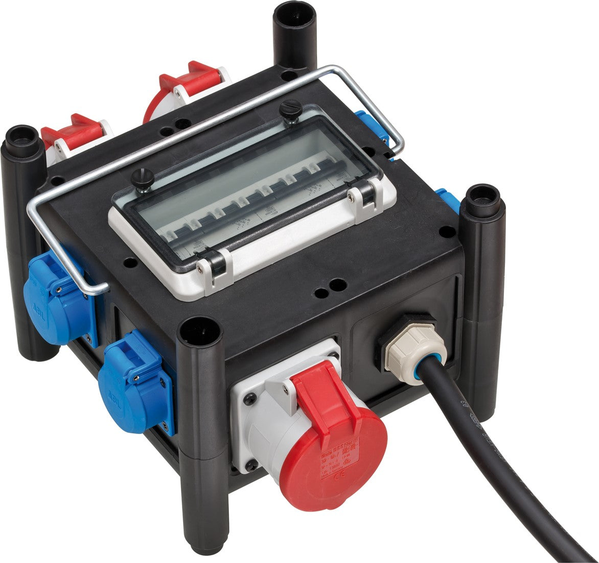 Compacte rubberen stroomverdeler BSV 3/32 2 IP 44 Stapelbare, spatwaterbestendige behuizing uit speciale rubbersamenstelling, voor langdurige belasting. Onbreekbare, stootvaste behuizing bestand tegen vuil en weersinvloeden. Bestand tegen UV- en ozonstralen en diverse vloeistoffen zoals: olie, vet, benzine en zuren. Behuizing temperatuurbestendig -30°C tot +80°C.