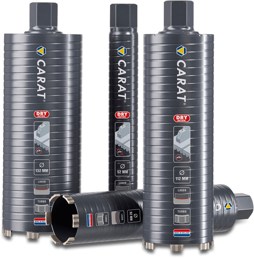 Met Carat DRY boren, boort u in combinatie met diamantboormachines met soft-slagfunctie en stofafzuiging eenvoudig droog in kanaalplaten en gewapend beton.