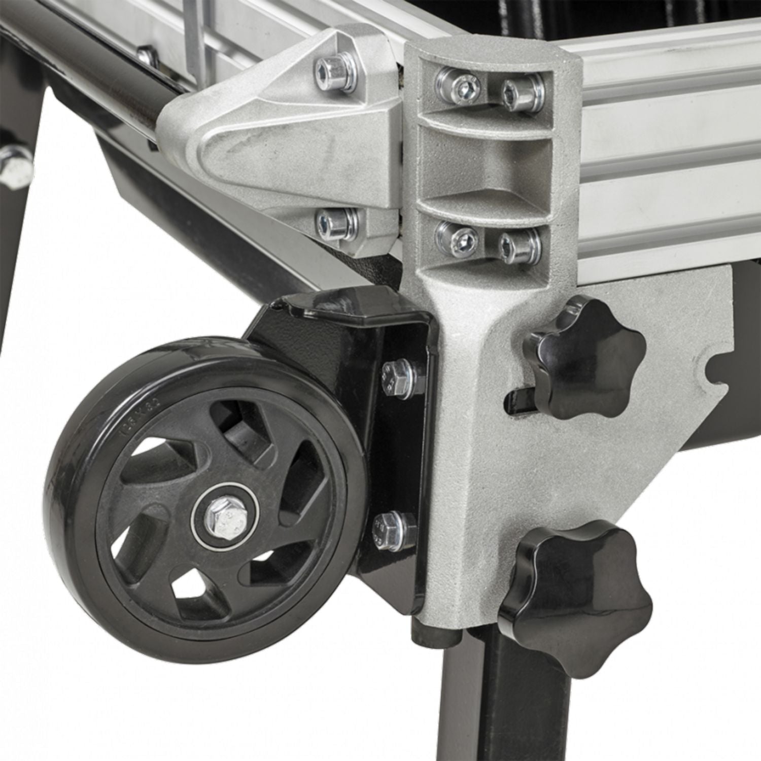 - Aluminium onderstel met inklapbare poten en transportwielen.