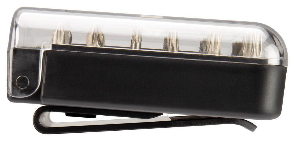 - 31-delige schroefbitset bestaande uit 30 schroefbits en magnetische bithouder, in handige kunststof meeneemverpakking met clip
